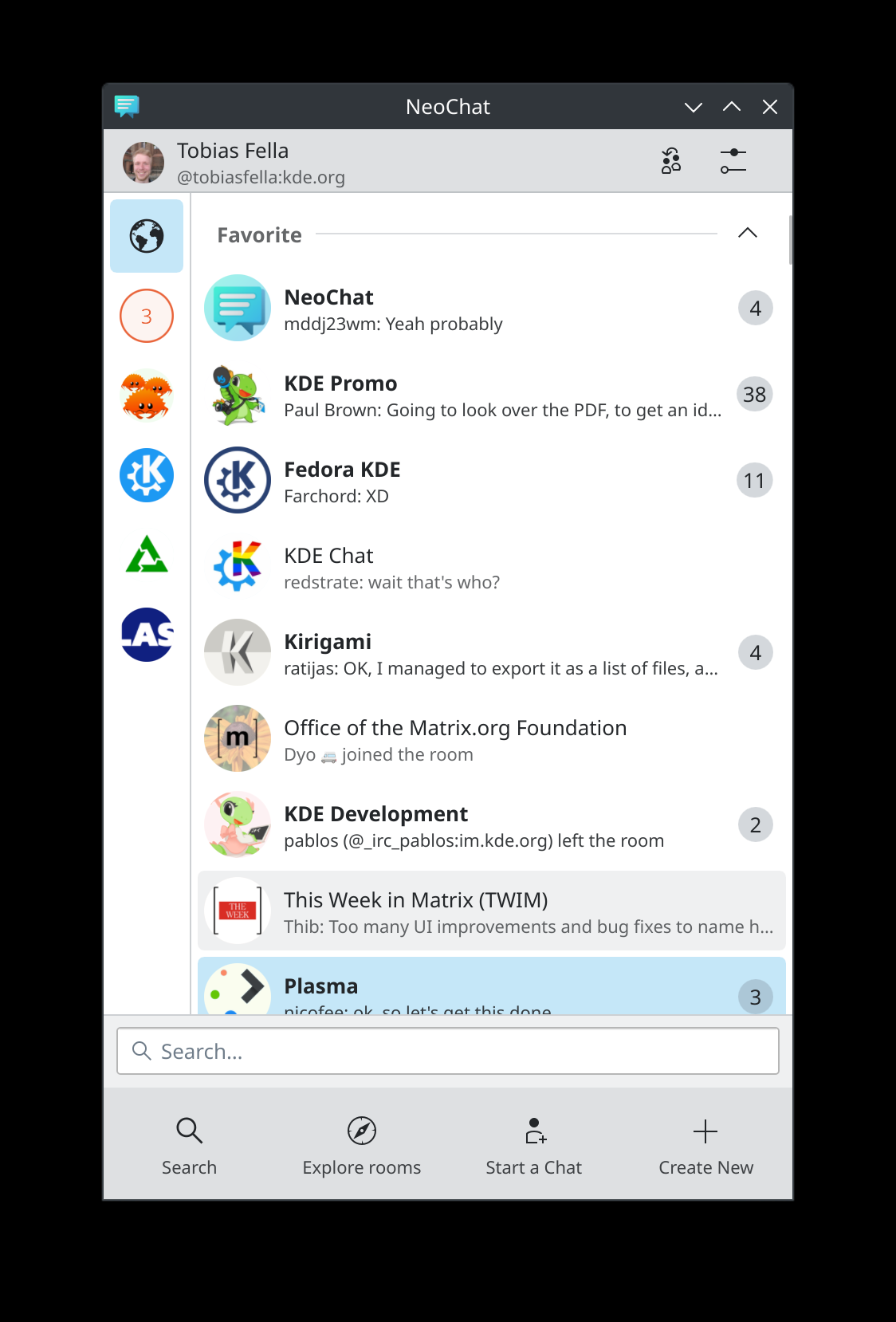 • I've fixed our most annoying bug: When NeoChat fails to connect to the server of the last active connection on startup, it gets stuck in a loading screen forever. The only way of fixing that was to delete a line from NeoChat's config. Now, the user can choose on startup which connection to continue with. Further improvements to this will come in the next weeks.