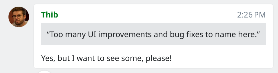 This list is far from complete and hides more enhancements, including bug fixes and new translations thanks to all our contributors, and our upstream projects.