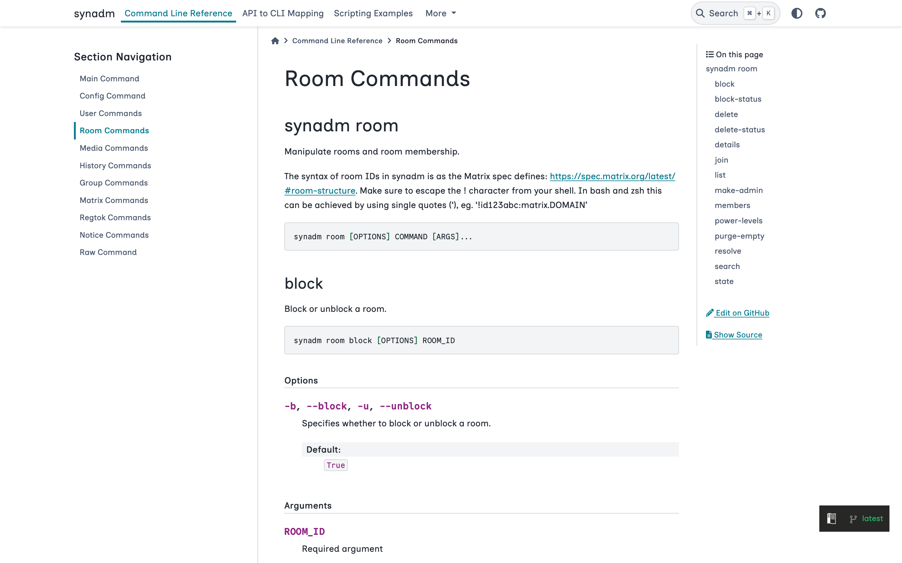 2. There is now an API to CLI mapping page for synadm, linking to the Synapse Admin API docs and the synadm command that uses the linked Synapse Admin API. This is useful for seeing what's implemented and what's not, or if you forgot which command does what you want.